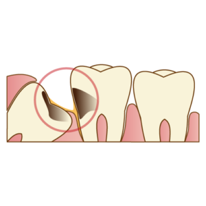この部分は歯ブラシの毛先が届きにくいことに加え、デンタルフロスなどを用いても清掃が行き届かないこともめずらしくありません。