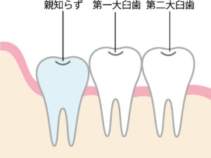 親知らずは、ほかの永久歯が生えそろってから、最後に生えてくる歯です。